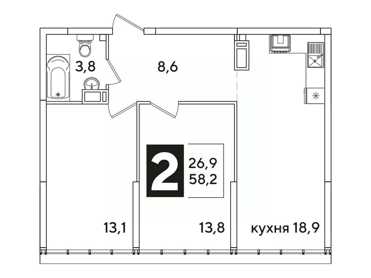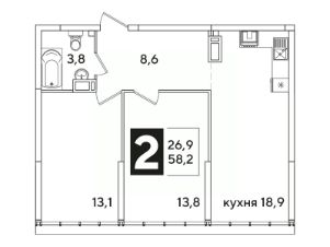 Общая площадь58,2 м²