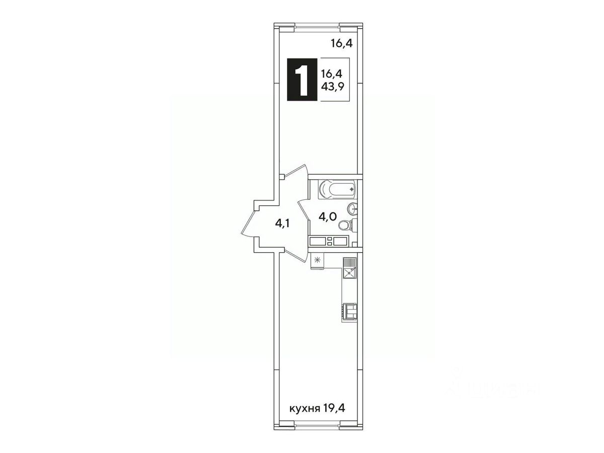 Общая площадь43,9 м²