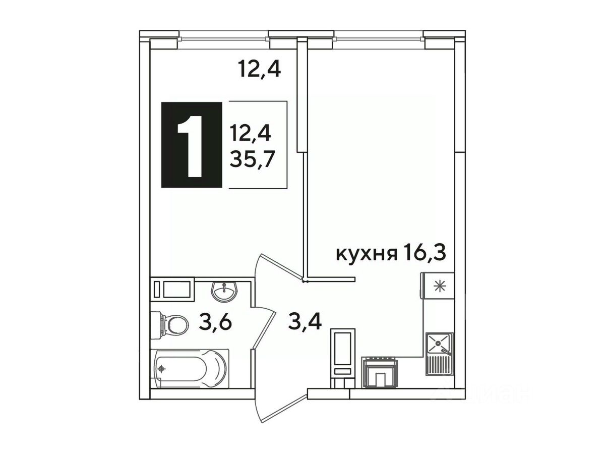 Общая площадь35,7 м²
