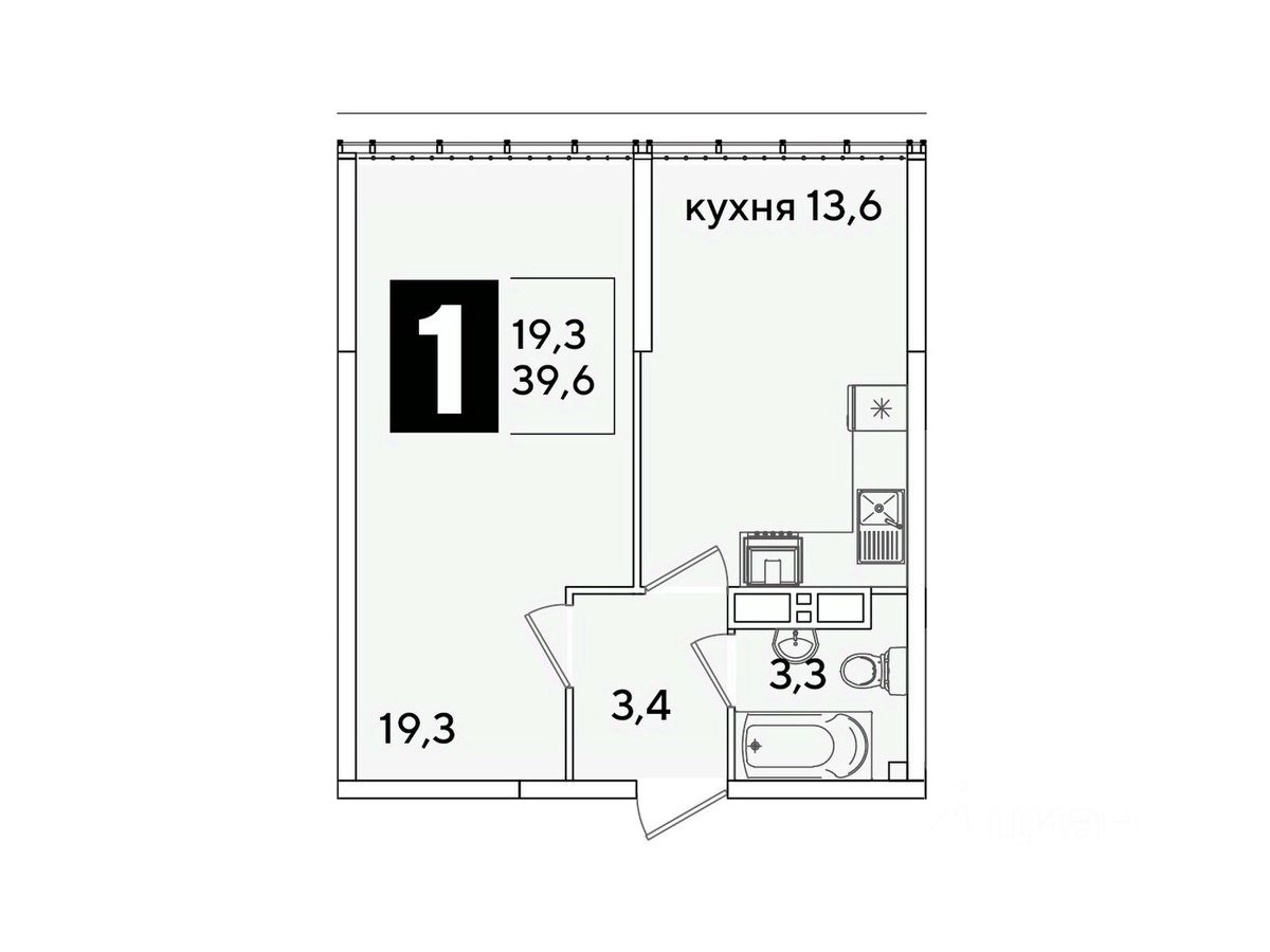 Общая площадь39,6 м²