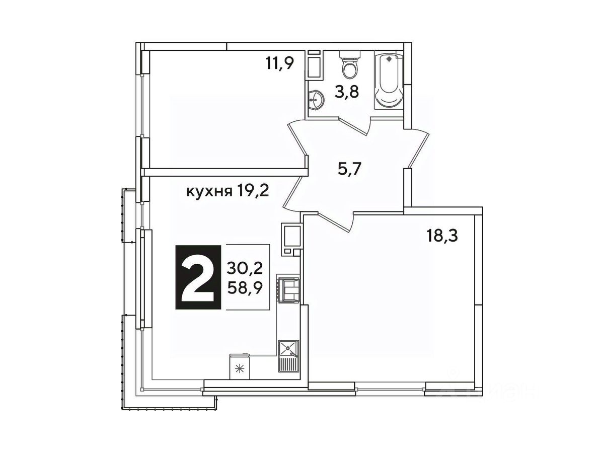 Общая площадь58,9 м²