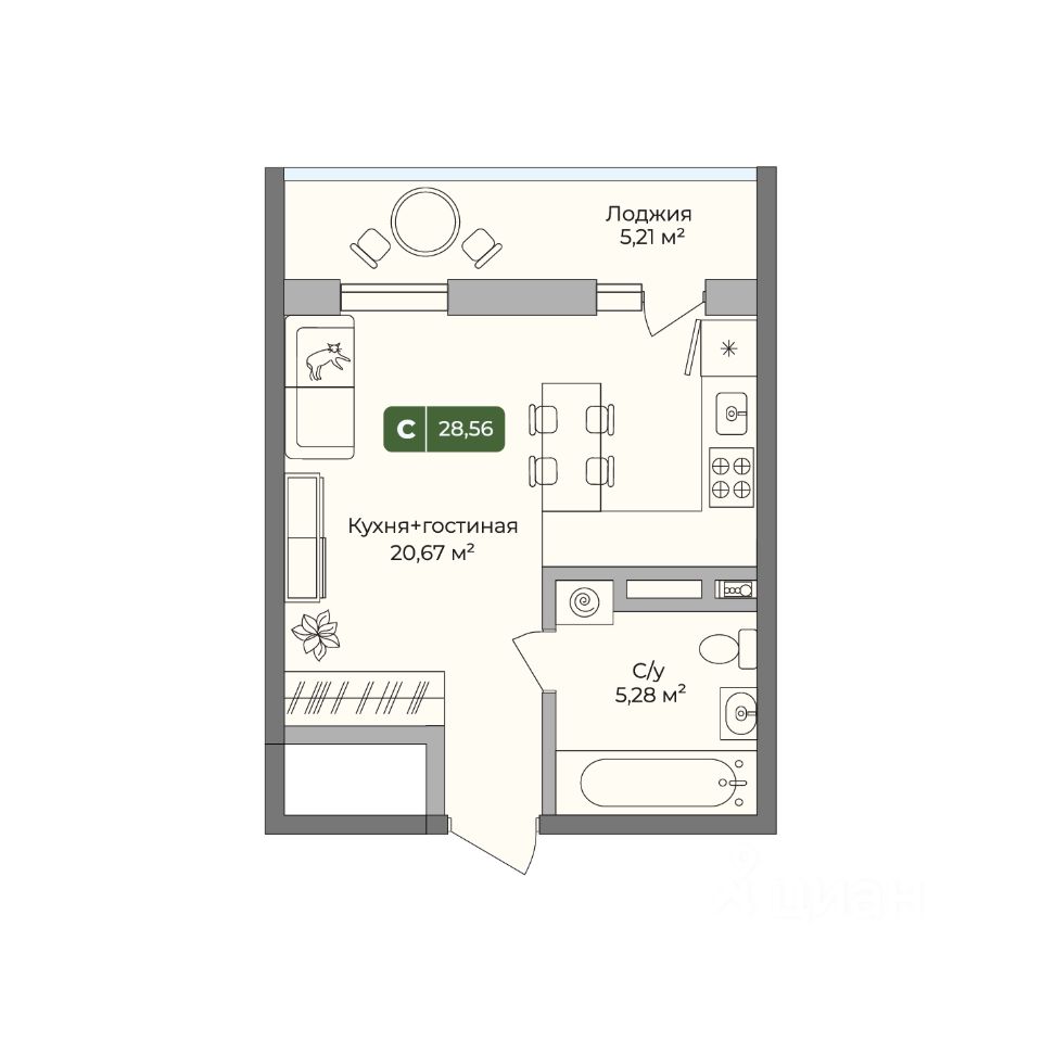 Уникальная студия 116 площадью 28,56кв.м.(Л1 подъезд 2) в ЖК "Цитрус".