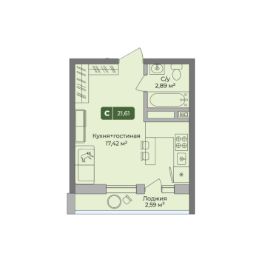 Уникальная студия 2 площадью 21,605кв.м.(Л2 подъезд 1) в ЖК "Цитрус".