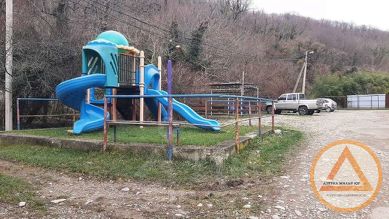 Большой просторный двор с детскими площадками.