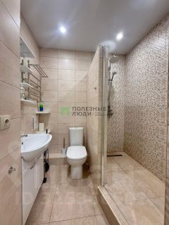 Сан узел с шикарной огромной душевой в котором установлено зеркало в полный рост.