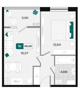 Общая площадь39,28 м²