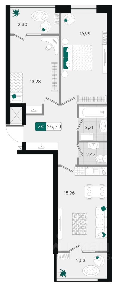 Общая площадь66,5 м²