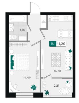 Общая площадь41,2 м²