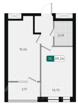 Общая площадь39,26 м²