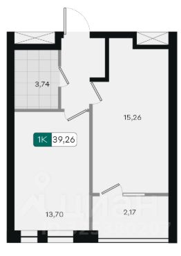 Общая площадь39,26 м²