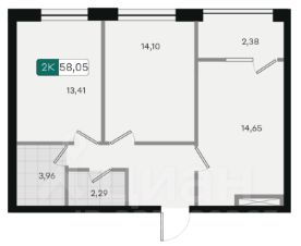 Общая площадь58,05 м²