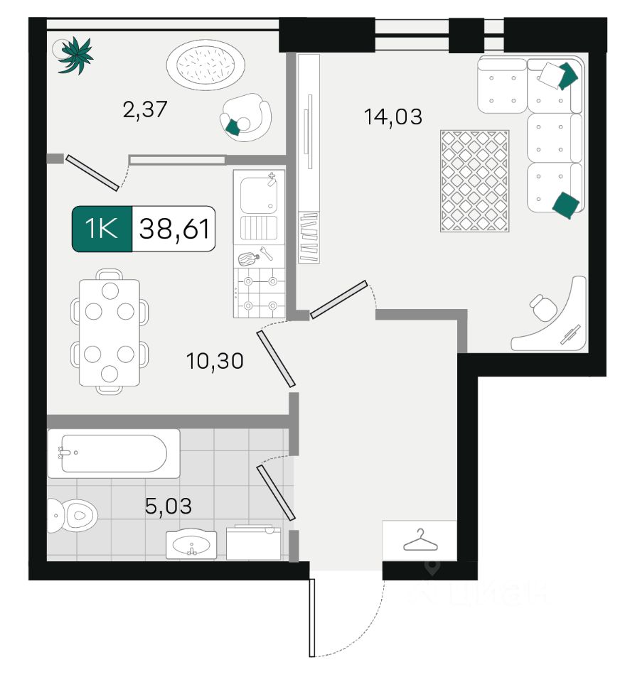 38,61 м²