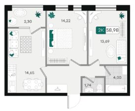 Общая площадь58,98 м²