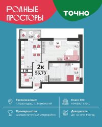 Общая площадь57,3 м²