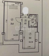 Однокомнатная квартира 55,8 м2, с кухней - 12,6 м2, на 7 мансардном этаже ( по документам нежилое помещение, прописки нет), в кирпичном доме.