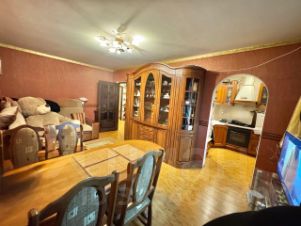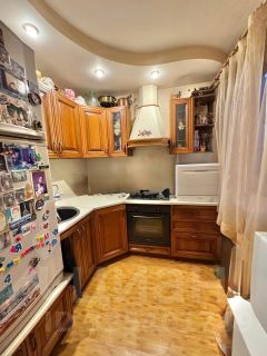 Трехкомнатная квартира, раздельный санузел, кухню объединили с большой комнатой, и получилась большая кухня-гостиная. Широкий увеличенный балкон.