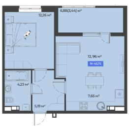 Общая площадь45,73 м²