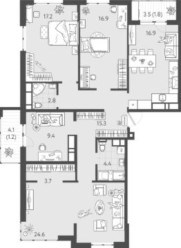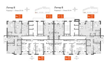 Продаётся 4-комнатная квартира в сданном доме (Литер 8), срок сдачи: III-кв. 2024, общей площадью 114.37 кв.м., на 24 этаже. Добрососедский квартал "Все свои"