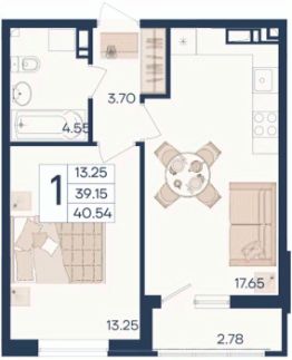 1 комнатная квартира с ремонтом 40.54 м², на 7 этаже в жилом комплексе "Дом 101".