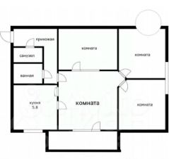 44,7 кв.м: изолированные комнаты (жилая 28 кв.м), кухня 5,8 кв.м