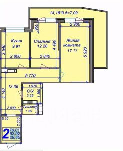 2-комн. квартира, 70,1 кв.м, ЖК "Дуэт", Прикубанский район | 10/17 эт. | монолит-кирпич