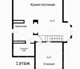 1 этaж - прocтоpную куxню-гостиную 54 м2, жилую комнату, сaнузeл.