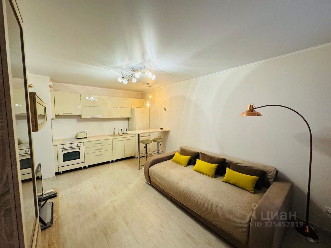 Общая площадь 40,3 кв.м. Одна изолированная комната, и большая кухня-гостиная площадью 17,2 кв.м.