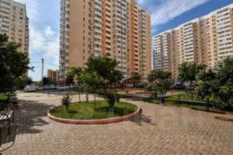 Во дворе современные детские и спортивные площадки, дет/сад, рядом круглосуточный гипермаркет "Лента", остановка общественного транспорта в 200 м от дома.