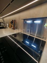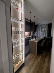 Квартира с современным ремонтом. Встроенный кухонный гарнитур, встроенная вытяжка, выдвигается. Посудомоечная машина, духовой шкаф, микроволновая печь, холодильник, сушильная машинка, винный холодильник (бар)-встроенная техника. Оставшаяся мебель по-договоренности. Раздельный санузел.