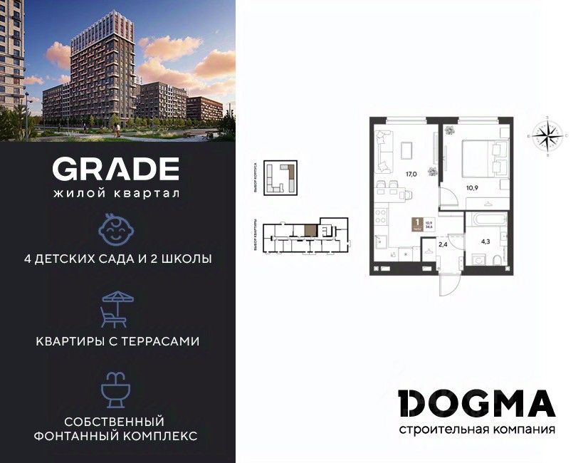 В продаже 1-комнатная квартира от застройщика! ЖК GRADE г. Краснодар, Литер 15