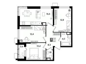 В продаже 3-комнатная квартира от застройщика! Мкр. "DOGMA PARK" г. Краснодар, Литер 30 Срок сдачи: 3 кв. 2027, общей площадью 69.7 кв.м., на 14 этаже.