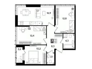 В продаже 3-комнатная квартира от застройщика! Мкр. "DOGMA PARK" г. Краснодар, Литер 30 Срок сдачи: 3 кв. 2027, общей площадью 70.6 кв.м., на 2 этаже.