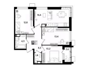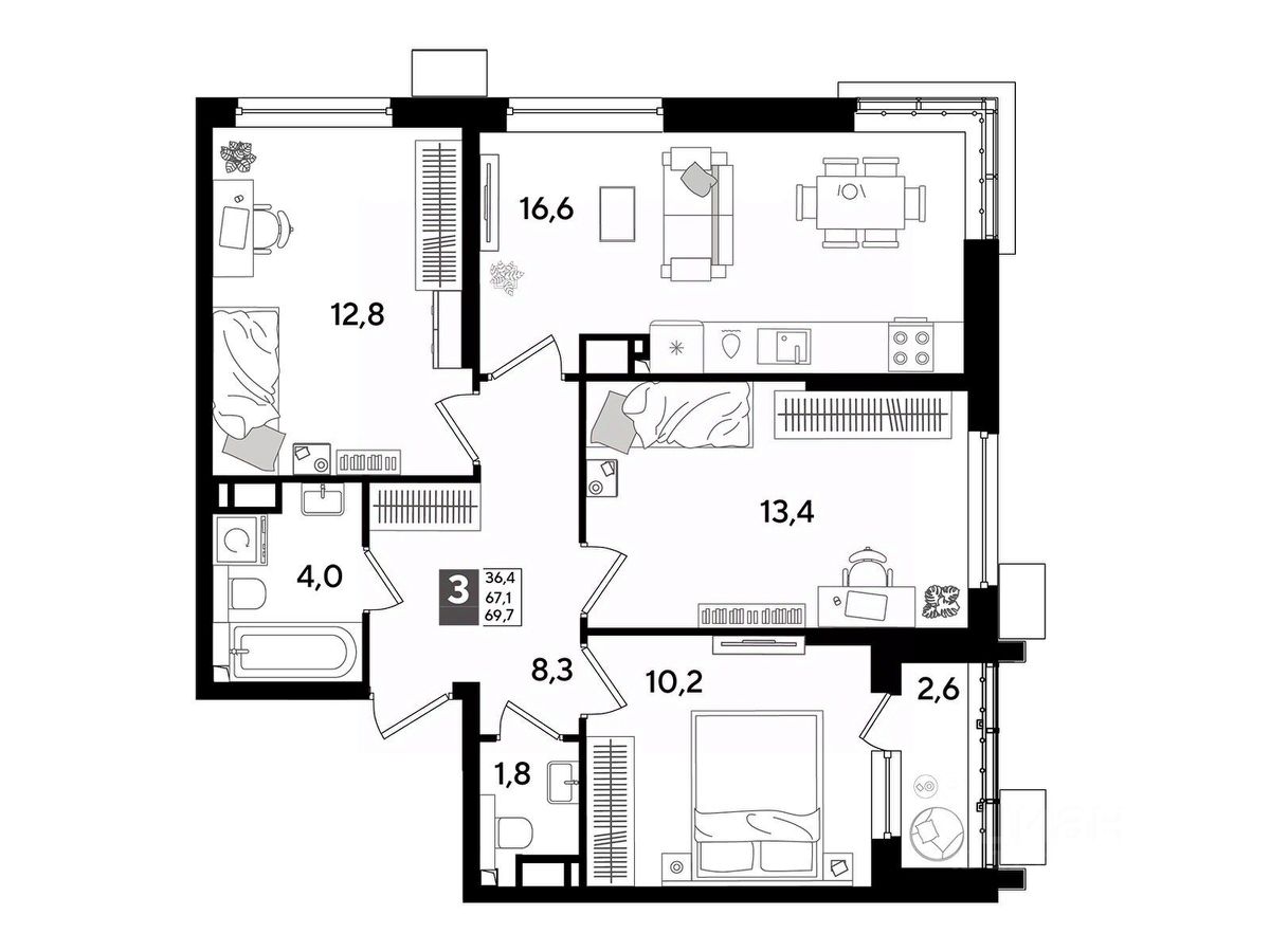 В продаже 3-комнатная квартира от застройщика! Мкр. "DOGMA PARK" г. Краснодар, Литер 30 Срок сдачи: 3 кв. 2027, общей площадью 69.7 кв.м., на 11 этаже.