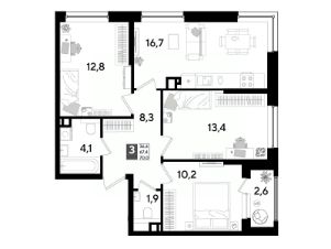 В продаже 3-комнатная квартира от застройщика! Мкр. "DOGMA PARK" г. Краснодар, Литер 33 Срок сдачи: 3 кв. 2027, общей площадью 70 кв.м., на 9 этаже.
