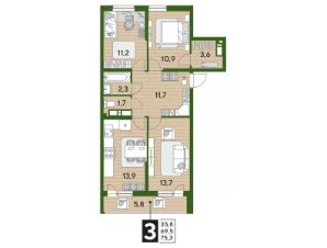 В продаже 3-комнатная квартира от застройщика! Мкр. "DOGMA PARK" г. Краснодар, Литер 36 Срок сдачи: 4 кв. 2027, общей площадью 75.6 кв.м., на 14 этаже.