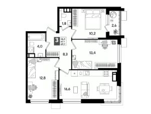 В продаже 3-комнатная квартира от застройщика! Мкр. "DOGMA PARK" г. Краснодар, Литер 31 Срок сдачи: 3 кв. 2027, общей площадью 69.7 кв.м., на 11 этаже.