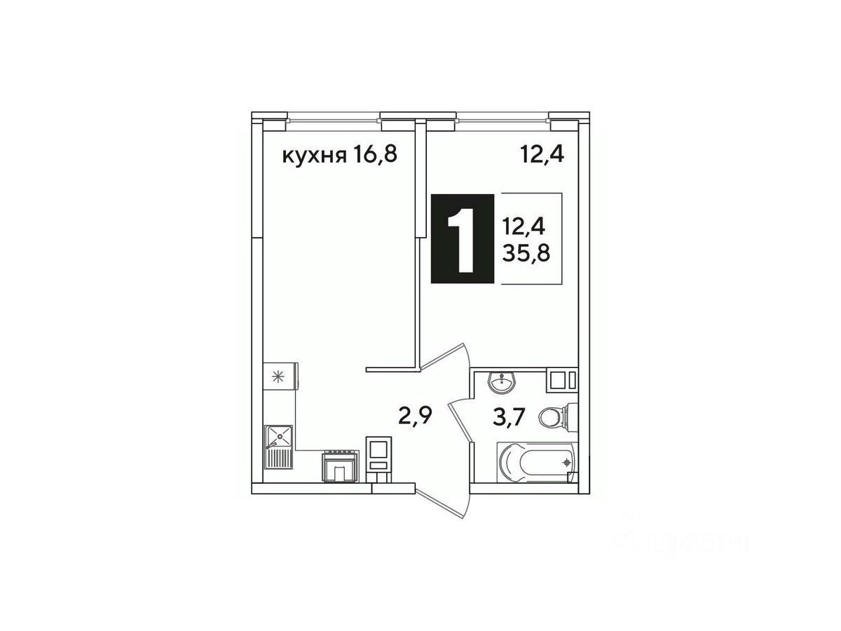 Общая площадь35,8 м²