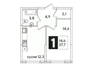 Продается 1-комн. квартира, 37,2 м²