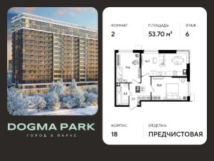 В продаже 2-комнатная квартира от застройщика! Мкр. "ДОГМА ПАРК" г. Краснодар, Литер 18 Срок сдачи: 2 кв. 2027, общей площадью 53.70 кв.м., на 6 этаже.