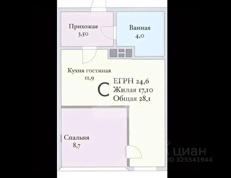 1 Спальня 8,7 м2,