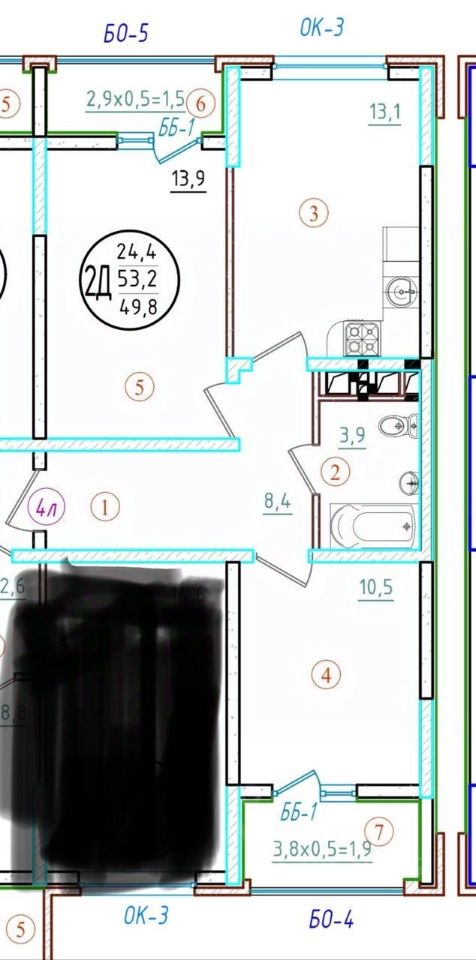 53,2 м²
