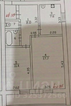 Общая площадь 52 кв.м, жилая 30 кв.м (две изолированные комнаты), кухня 8 кв.м