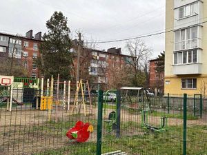 Территория ухоженная, с детской площадкой и озеленением.