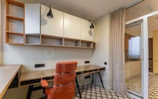Сделан дизайнерский ремонт, балкон совмещён с кухней, оборудована рабочая зона.