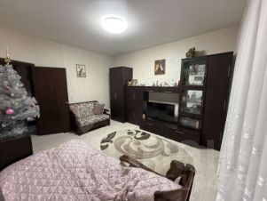 Квартира однокомнатная с большой планировкой.Просторная комната площадью 18 метров и кухня площадью 12 метров.Плюсом большим является высокие потолки 2,8 что позволяет поставить большой шкаф.