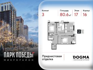 Срок сдачи: 1 кв. 2026, общей площадью 80.6 кв.м., на 17 этаже.