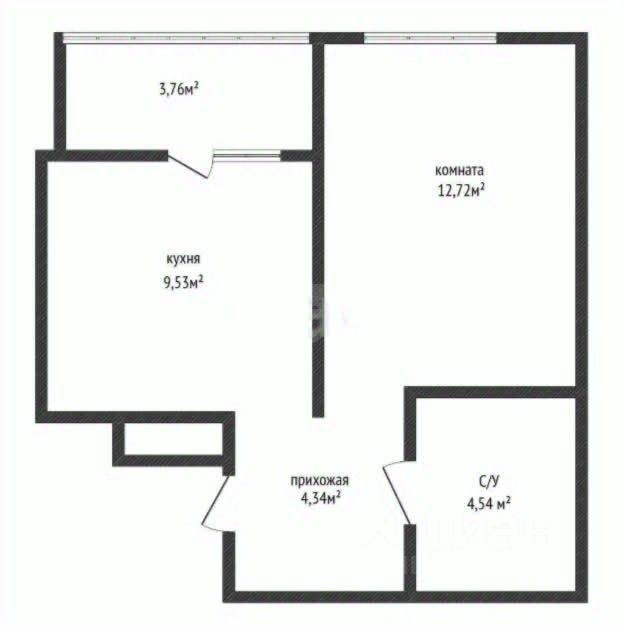 Удобная планировка: кухня 9,53 м2 с выходом на лоджию, комната 12,7 м2.