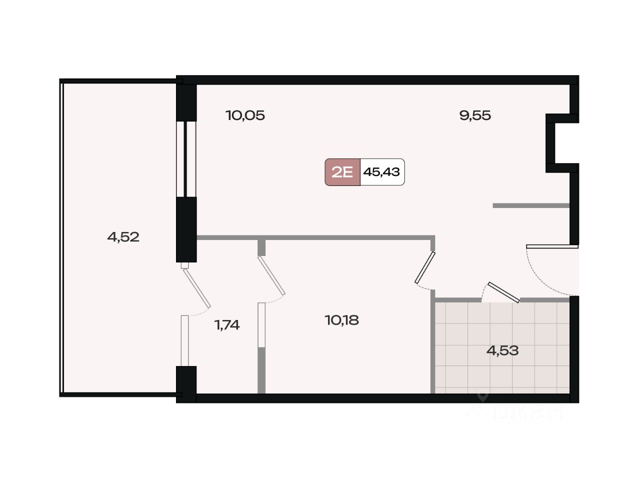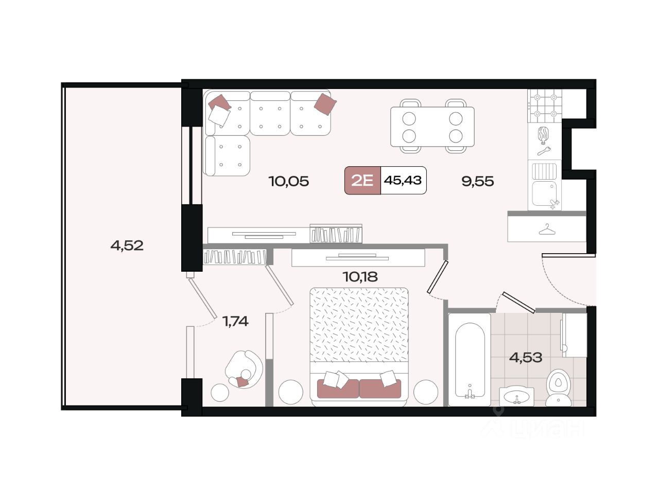 Общая площадь45,43 м²