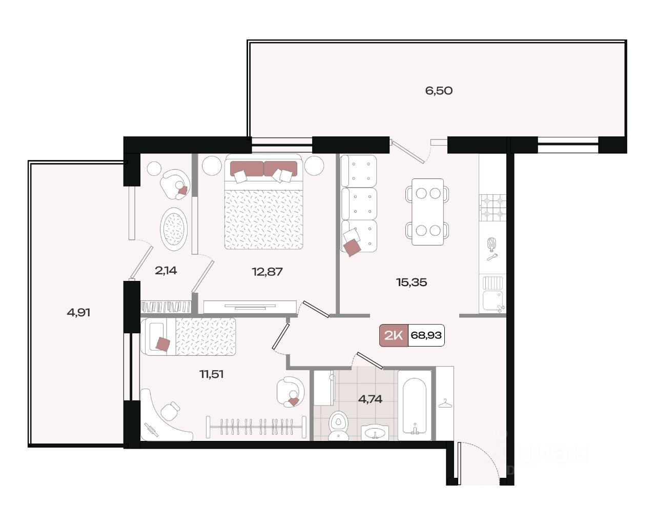 68,93 м²