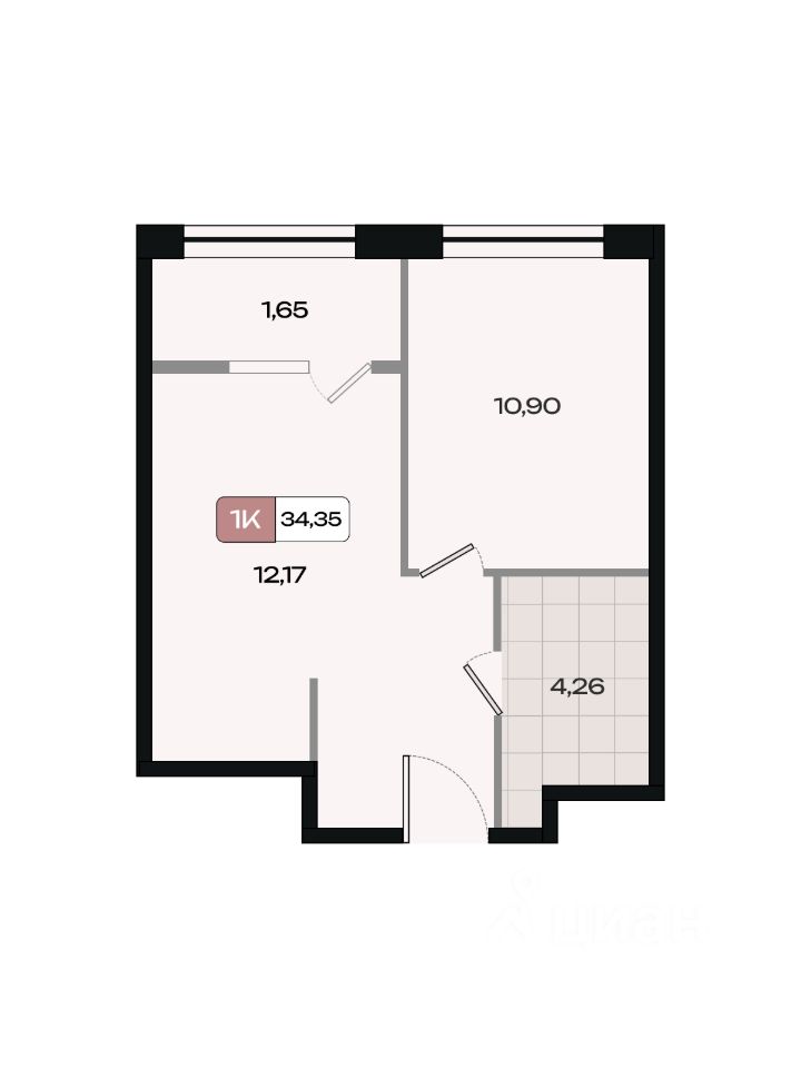 Общая площадь34,35 м²
